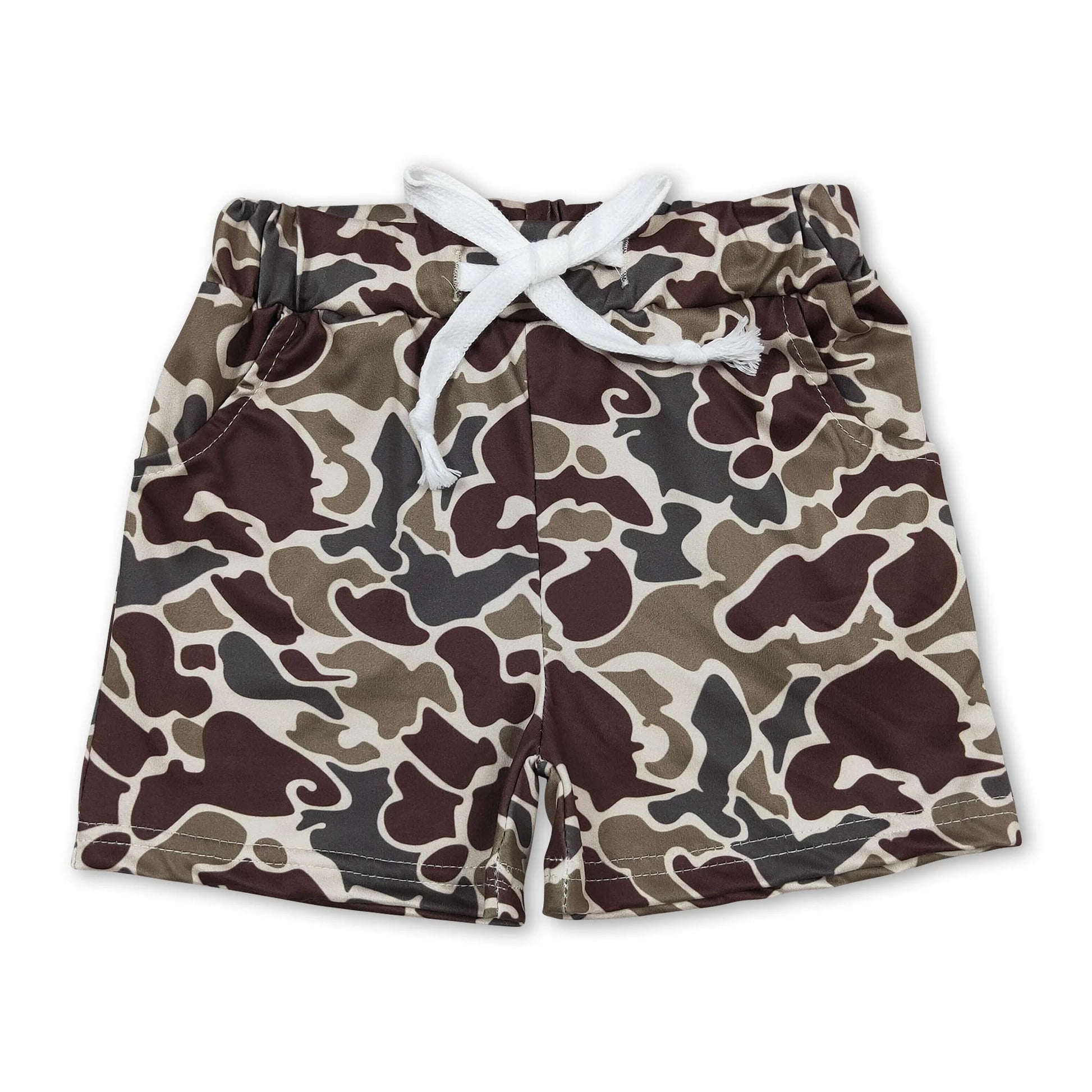 Upgrade your child's wardrobe with our Brown Camo Shorts. Made with durable fabric, they're designed to withstand rough play and countless washes. The camo design adds a cool, trendy touch while the elastic waistband provides a secure fit. Ideal for active kids!